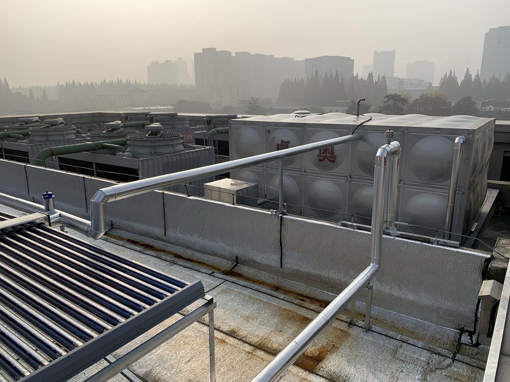 南京华山饭店太阳能储热系统,60组太阳能集热器+30吨方形保温水箱